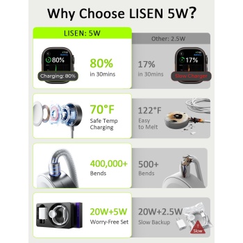LISEN for Apple Watch Series 11 Charger Fast Charging 20W+5W[30mins=80% Charged]
