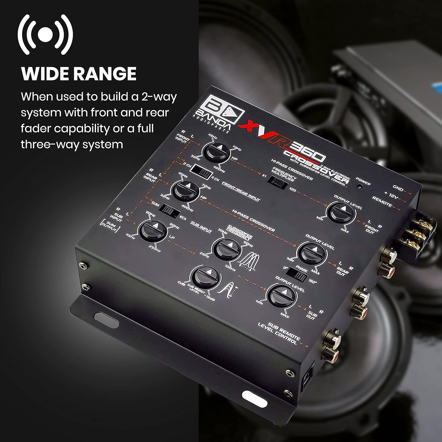 WIDE RANGE: When used to build a 2-way system with front and rear fader capability or a full three-way system, it allows you to choose from a wide range of crossover points between the front, rear and subwoofer outputs