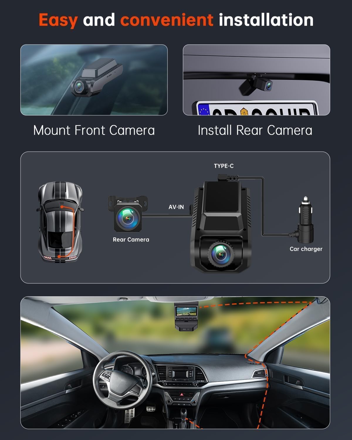 Easy Installation & Exceptional Support:The Ecomoment car dash cam front and back features a sleek, minimalist design that won’t obstruct your view while driving, ensuring a safe and comfortable experience. We also offer a 1-year warranty and lifetime professional technical support. Feel to contact us if you need any assistance — we’re here to help!