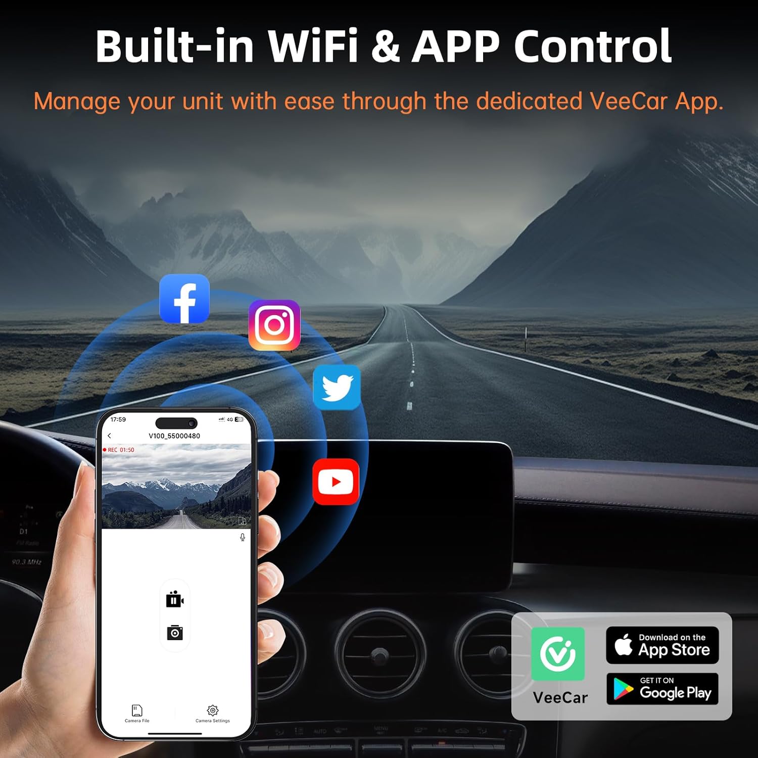 Ecomoment Dash Camera with GPS: Built-in GPS accurately records your driving location and speed. You can view your driving route and tracker on Google Maps via Wi-Fi using the app or with our GPS Player. We provide firmware upgrades for this car camera, allowing you to enjoy over-the-air updates via the VeeCar App.