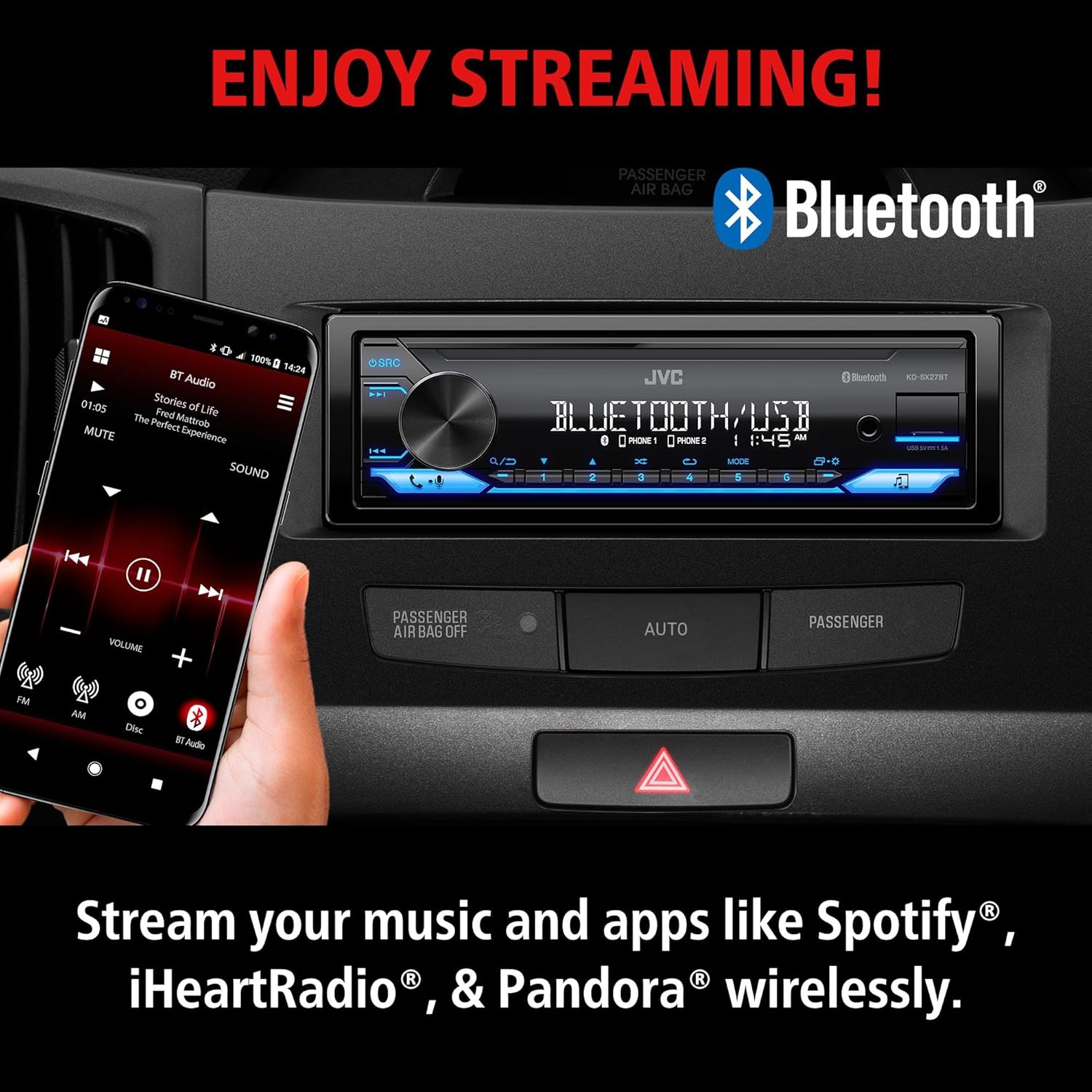 WIRELESS DIGITAL MEDIA RECEIVER: JVC KD-SX27BT Car Stereo Receiver integrates easily into a wide range of vehicles and lets you stream music from popular music apps like Pandora & Spotify wirelessly via Bluetooth, or play stored tracks on your device