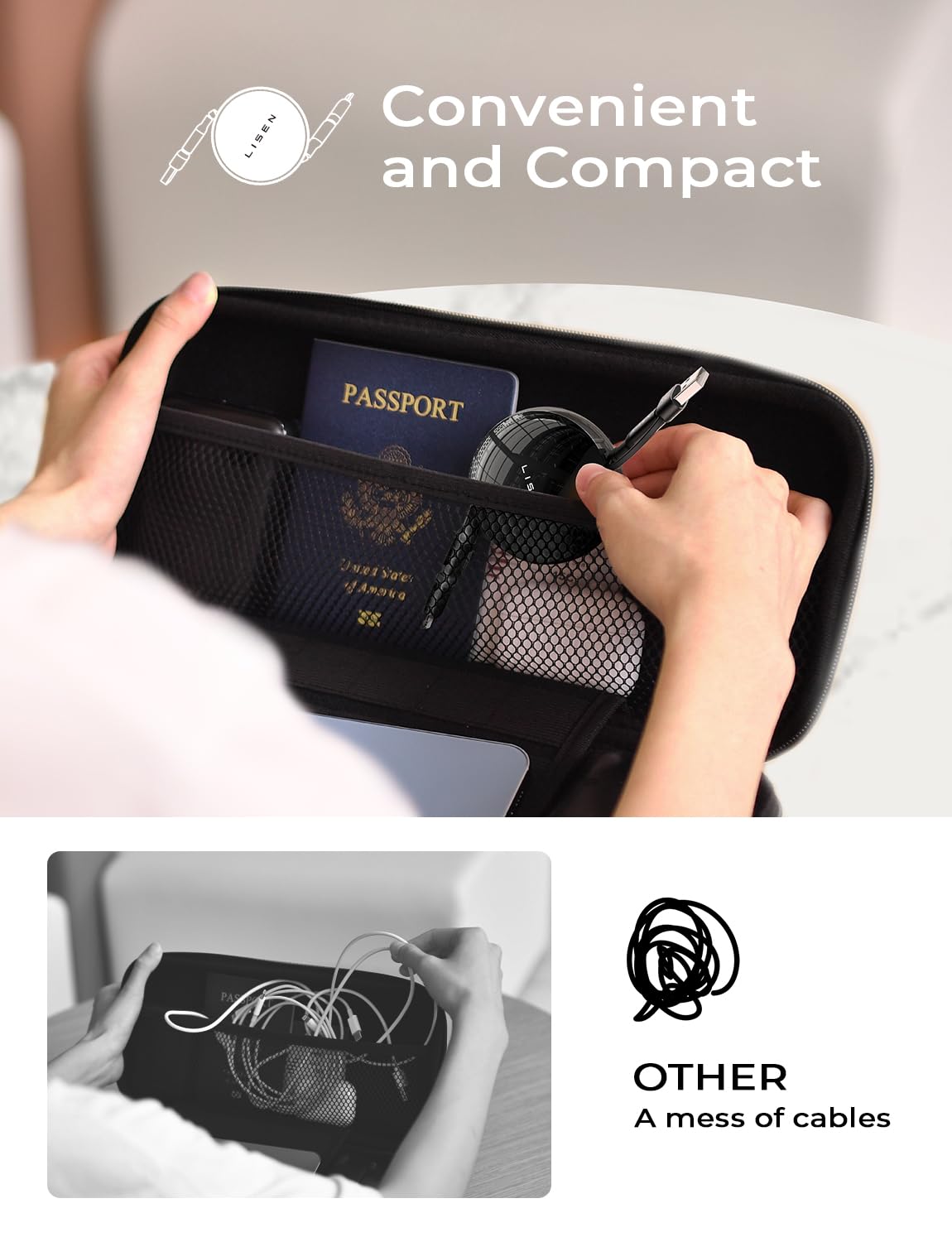 👍【5 Retractable Length-Truly Mind Boggling CONVENIENT!!】LISEN Retractable Charger offers 5 adjustable Lengths: 0.65ft-1.3ft-2ft-2.62ft-3.3ft. Total Length 3.3 ft/1M. Support both ends/one end pull/blind pull, with a retractable design, you just pull both sides to stretch or retract easily. Easy to place in your handbag, laptop bag, or pocket. Cut down on clutter and save some space.
