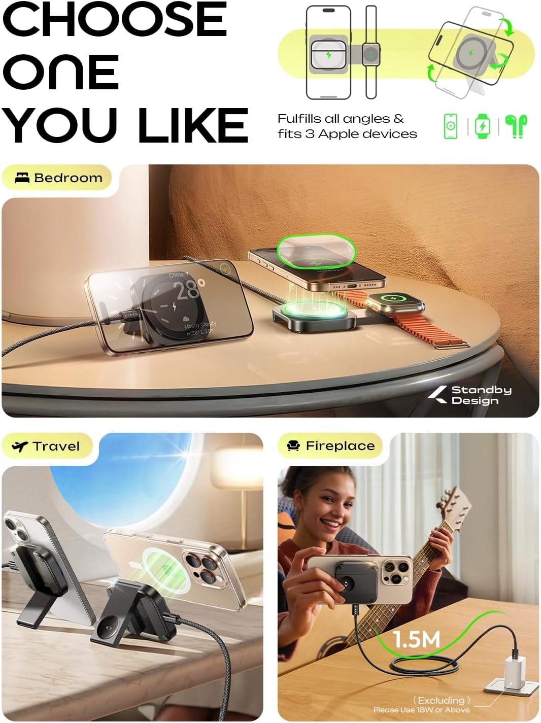 [Super Travel Accessories Charger Stand for Magsafe] It not only retains the advantages of the magsafe stand, but also achieves the ultimate in lightness, thinness and portability. Its size is similar to an AirPods 3, which can be easily placed in your pocket anytime and anywhere. It can not only conveniently charge your iPhone iWatch AirPods on the go,as travel charger for multiple devices but also acts as a phone holder anytime, making it the perfect assistant for TV shows and video calls on the go