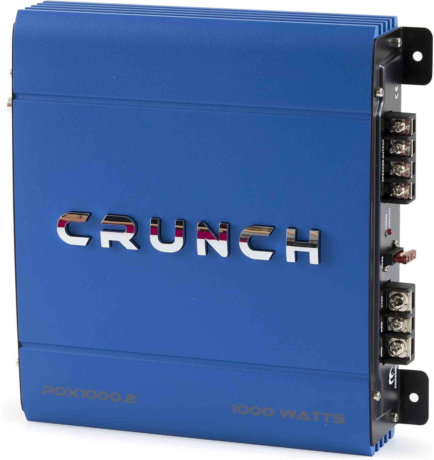 Enhance your car audio experience with the car audio subwoofer dual 12-inch sealed enclosure from MTX. This subwoofer packs a punch with a commanding 1200 watts of maximum power, supported by a consistent 400-watt RMS. Prepare for an audio journey defined by powerful, deep bass that sets a new standard. This powerhouse includes subwoofers boasting a 2-inch aluminum single 2-ohm voice coil and a robust 48-ounce magnet. These components work in harmony to produce deep, crystal-clear bass. The subwoofers also incorporate Spider Plateau Venting, a mechanical cooling method ensuring continuous air circulation for effective heat dissipation. The enclosure is carefully made from strong 5/8-inch MDF (Medium Density Fiberboard), ensuring the necessary structural integrity for outstanding sound quality. Its black carpet cover not only adds a stylish touch but also keeps your subwoofers securely in position. Unparalleled in quality, the Crunch 1000 Watt 2 Channel PowerDriveX Series is a low-noise pre-amplifier with low-level RCA inputs and outputs. Featuring a flexible installation process for an easy setup, this system allows the amp to run in 2 channels or bridge mono mode. With a rugged MOSFET pulse width modulation power supply, fully adjustable crossovers, and bass boost, this high-quality amplifier will always deliver the quality sounds you need. This system ensures high-quality sounds with minimal distortion. Take your car audio to the next level and enjoy listening to your favorite music with the bundle of MTX 12-inch Car Audio Subwoofer Box Enclosure and PowerDriveX 100 Watt 2 Channel Exclusive Blue A/B Car Stereo Amplifier from Crunch.