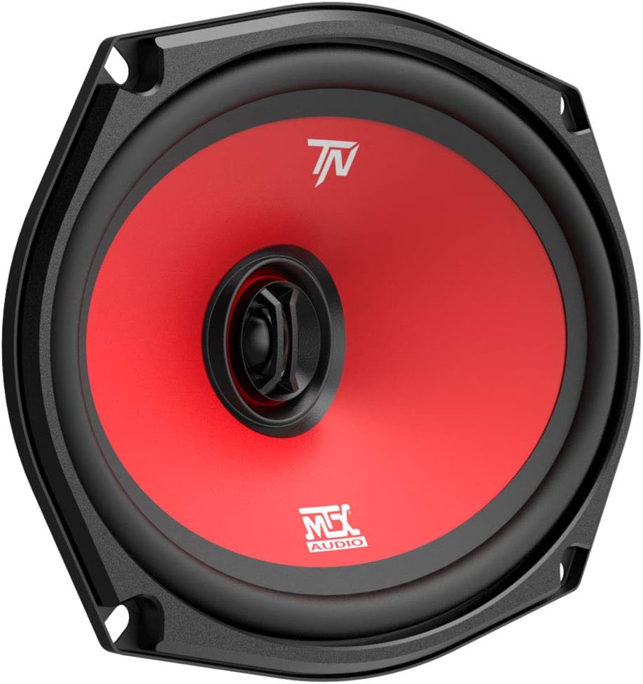 Terminate wimpy sound Put factory sound in your rear-view and step up to speakers that satisfy your hunger for more volume. Those bold, red woofer cones are the first sign that MTX doesn’t shy away from making a statement. Then, comes the sound. These Terminator69 6″x9″ full-range speakers will handle a healthy dose of power from an aftermarket stereo or amp, while delivering clarity that far surpasses your stock speakers. The durable polypropylene woofer and silk dome tweeter bring refreshing oomph and clearer highs. Prepare to rock with authority.
