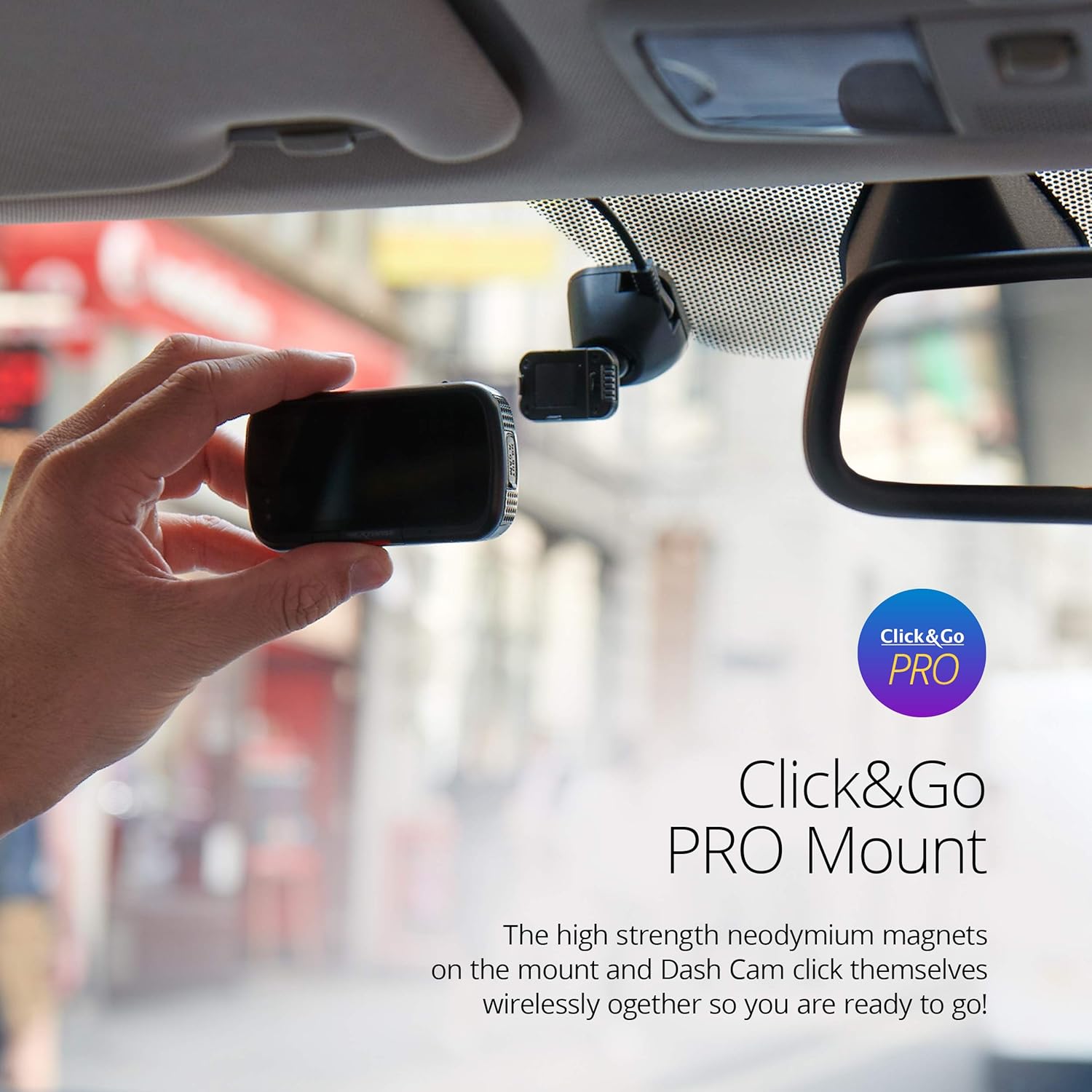 EXCLUSIVE CLICK&GO PRO POWERED CAR MOUNT – The 122 Dash Cam is wireless as it connects to a powered mount via magnet. The integrated magnetic power connectors allow you to install and remove your dash cam easily.