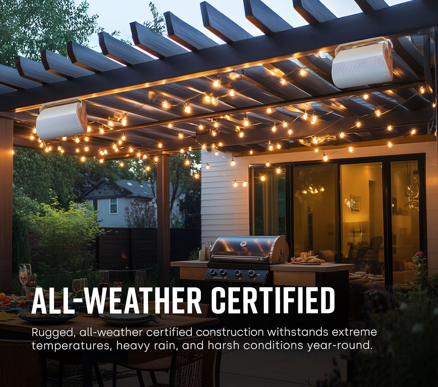 ALL WEATHER CERTIFICATION – The speaker for all seasons. With rugged durability and premium build, these outdoor wired speakers can effortlessly withstand all elements including extreme temperatures and heavy rain