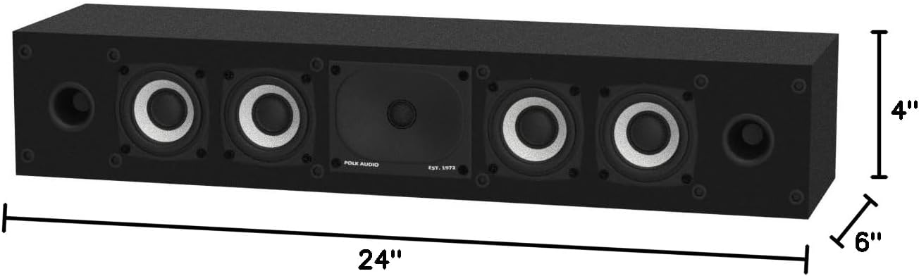 SLIM CENTER CHANNEL THAT WON’T BLOCK TV – Enjoy crisp, focused dialogues & dynamic, hi-res sound with Polk Monitor XT35, 4″ low-profile speaker with a 1″ Tweeter & (4) 3″ Dynamically Balanced Woofers that delivers an open mid-range and impactful bass