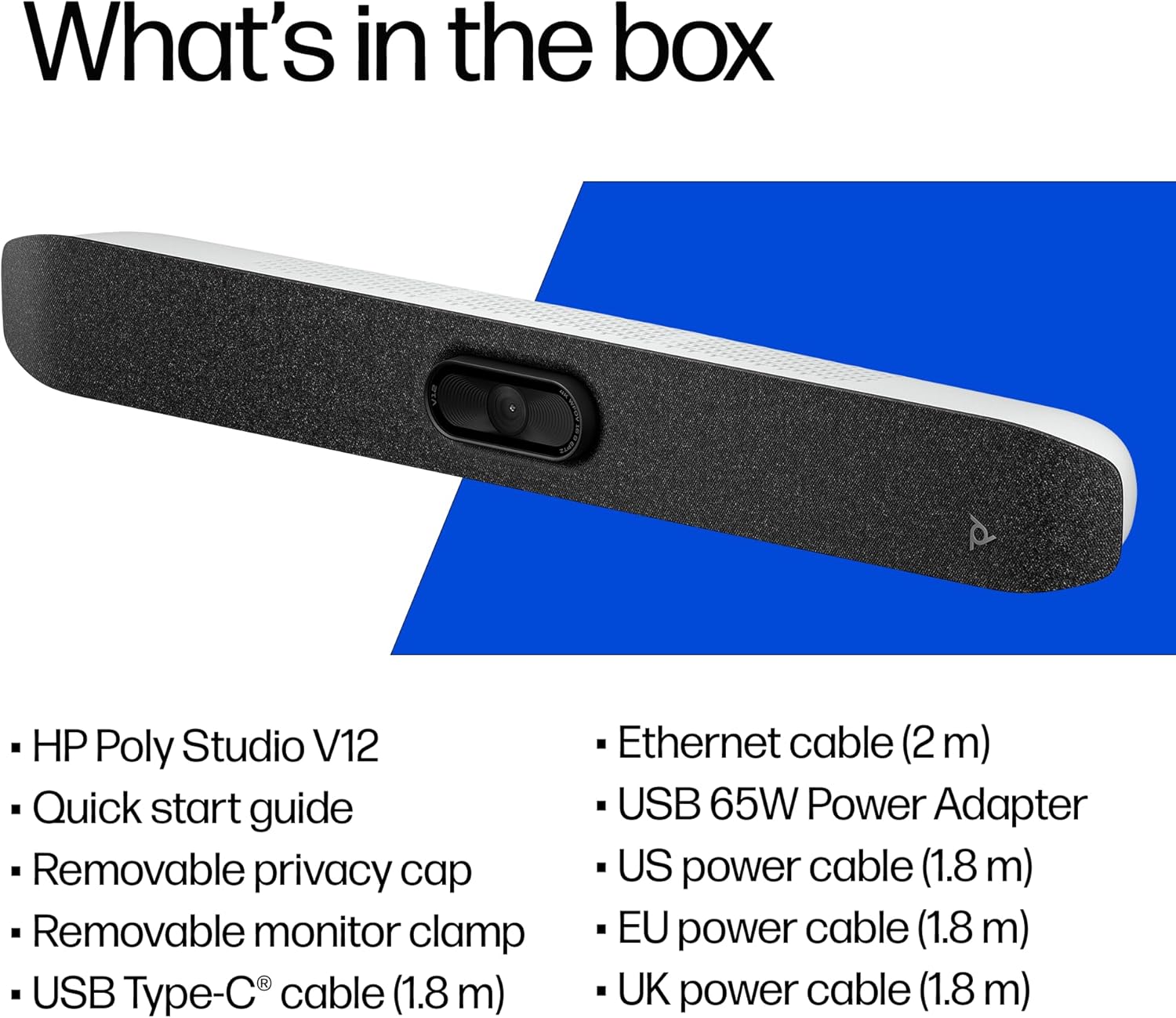 Poly Studio V12 – USB Video Bar for Small Rooms – 4K 20MP Camera, AI-Enhanced