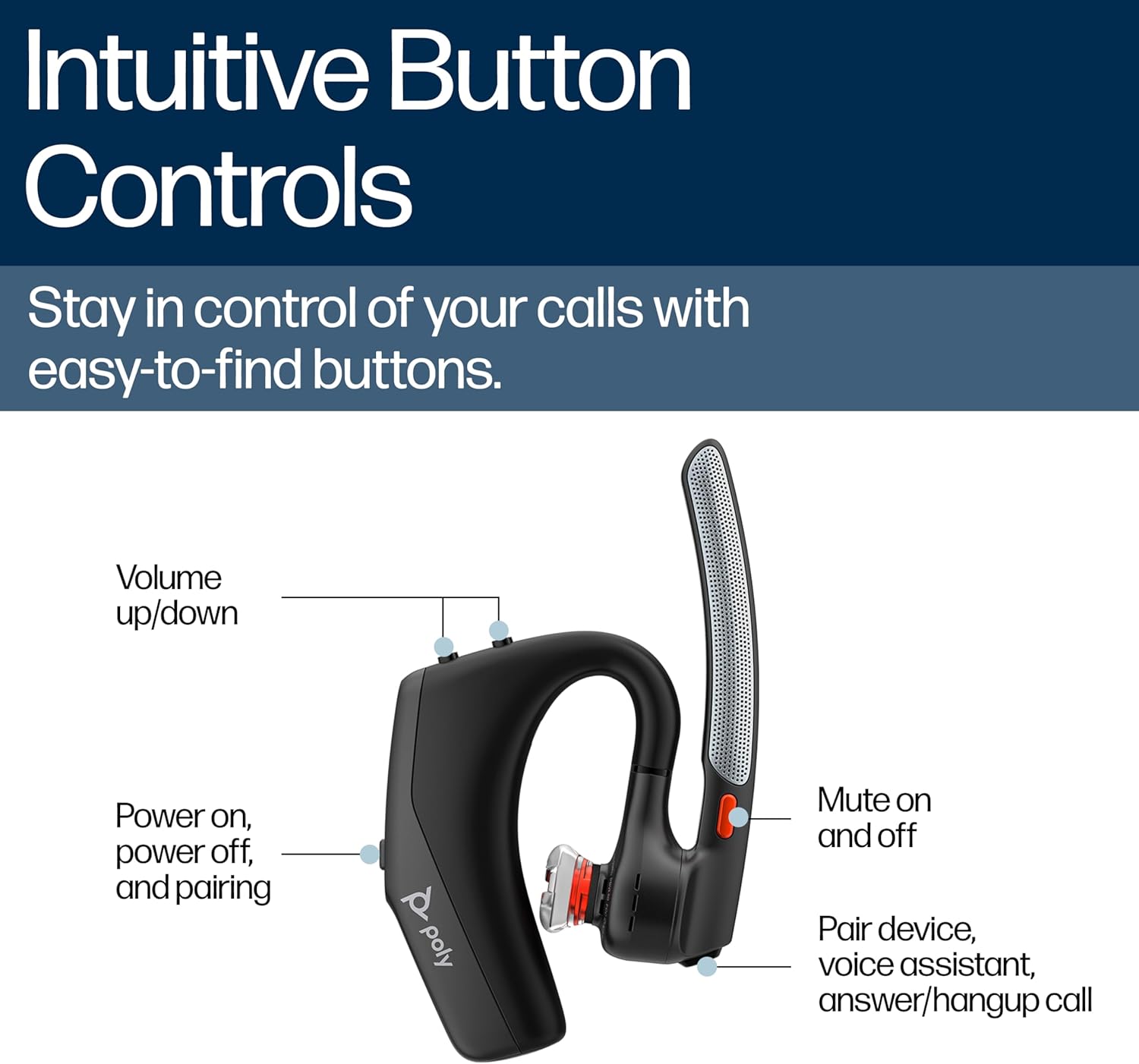 EFFORTLESS CONTROL AT YOUR FINGERTIPS: Effortless control and seamless connectivity let you manage calls on your Bluetooth headset for work via on-ear buttons, smart sensors or voice commands, keeping hands-free at home, meetings or on the go