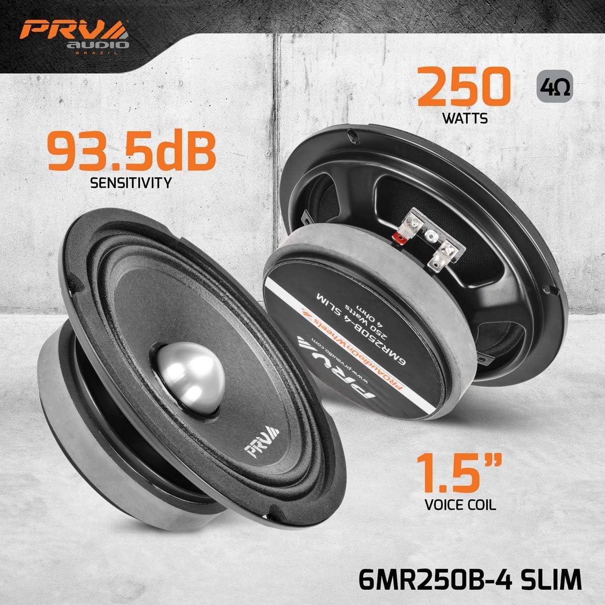 PRO AUDIO ON WHEELS: The MR SLIM series was designed as a solution for shallow doors, featuring an Aluminum Phase Plug (Bullet). This mid is built like a professional mid range loudspeaker, but it has been designed for use in the mobile audio market.