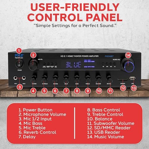 INTUITIVE AUDIO CONTROL – Tailor your audio to perfection with adjustable treble, bass, volume, and subwoofer controls on this amplifier home audio. The front panel audio control center ensures easy access, enhancing your wireless amplifier home audio.
