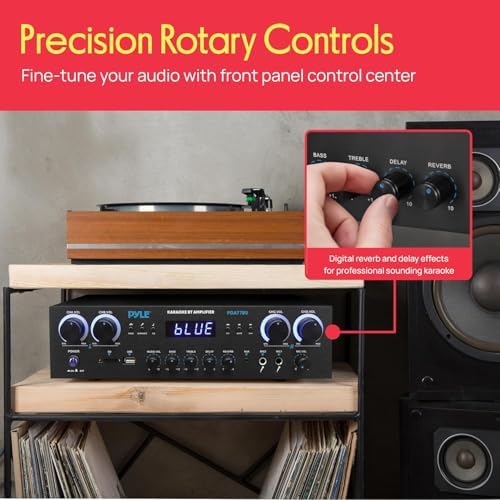 DUAL MIC INPUTS FOR LIMITLESS UTILITY – Take hosting to the next level with the flexibility of dual 1/4” microphone jacks. Customize your karaoke nights, events, or presentations w/ independent controls of our home stereo receiver bluetooth amp.