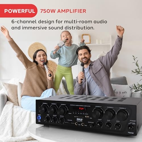 Pyle Wireless Bluetooth Home Audio Amplifier System-Upgraded 6 Channel 750 Watt