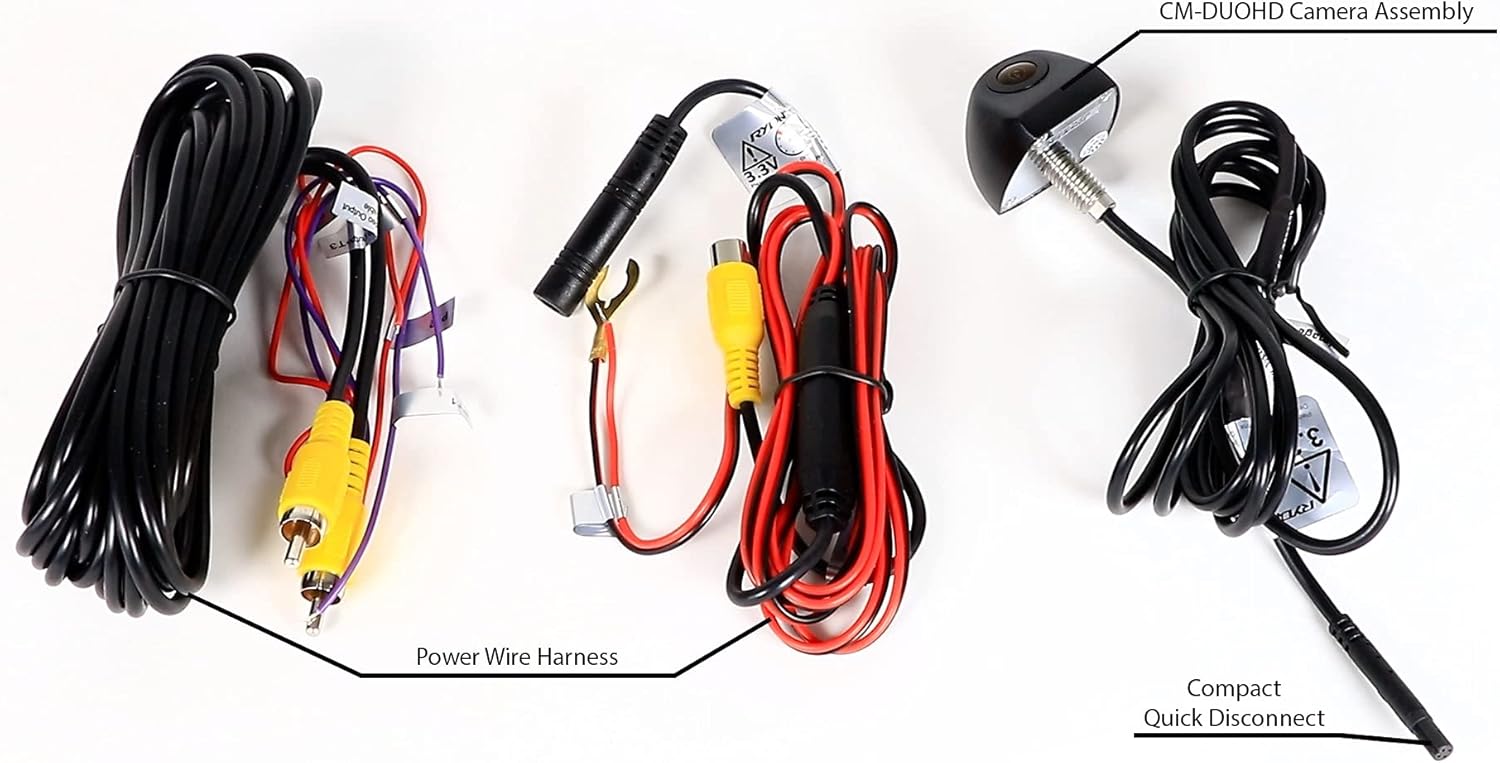 The CM-DUO3 HD is a high-quality backup camera with an Ultra HD CMOS II Sensor with NightVisionTM Technology great CVBS resolution with 960 TV lines HD image, effective number of pixels: 574,240, that displays high resolution video and work in night time visibility. The camera can be installed in two different positions, at the lip of license plate or vertical surface (switchable) allowing for multiple vehicle type compatibility. The high-resolution video and wide-angle lens ensure that if anything is behind your vehicle, you will see it before you start backing up.