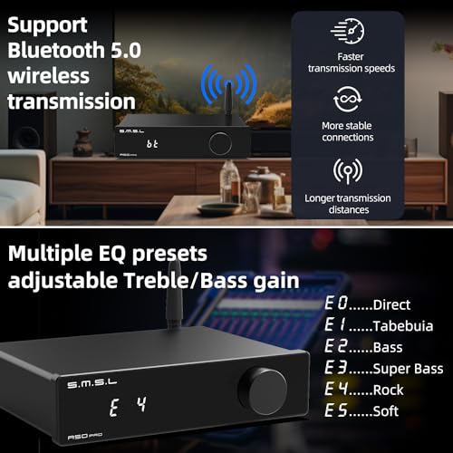 Multiple EQ presets:This digital amplifier features multiple EQ presets, allowing it to adapt to various music styles and provide a diverse listening experience. Additionally, it has bass and treble adjustments, with a customizable range of ±9 levels.
