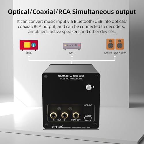 Versatile Output Options: The B200 features Optical/Coaxial/RCA Simultaneous output, allowing seamless connection to decoders, amplifiers, and active speakers for an enhanced audio experience.