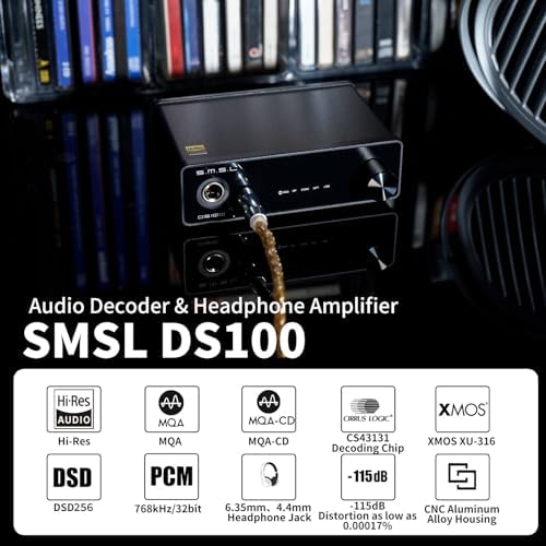 High Performance MQA DAC Amplifier: Harnessing the audio decoding chipset, the CS43131 from Cirrus Logic, SMSL DS100 boasts meticulously designed circuitry that elevates its performance to an astonishing distortion level of 0.00017% (-115dB)! It provides an unparalleled music experience and brings you into a new realm of music enjoyment. Supports MQA/MAQ-CD Decoding. Restore the most authentic sound in the recording studio.