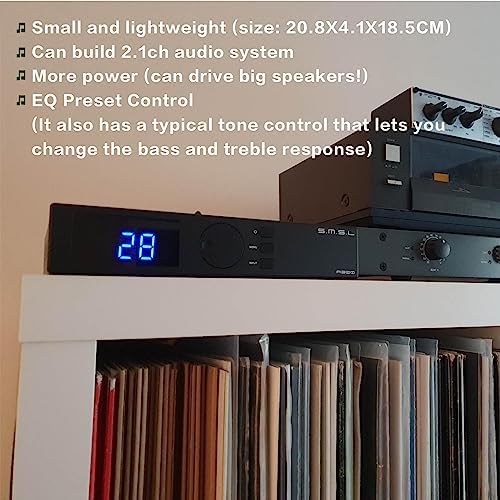 Can Form A 2.1 Audio System: With a dedicated subwoofer signal pre-output, connecting an active subwoofer to form a 2.1 system is made effortless. 8 preset EQ options, and treble/bass adjustment for easy matching of a variety of speakers and music. The built-in SMSL SDB patented sound and treble/bass adjustment provide unprecedented flexibility in matching this amplifier with a wide variety of speakers and music types.
