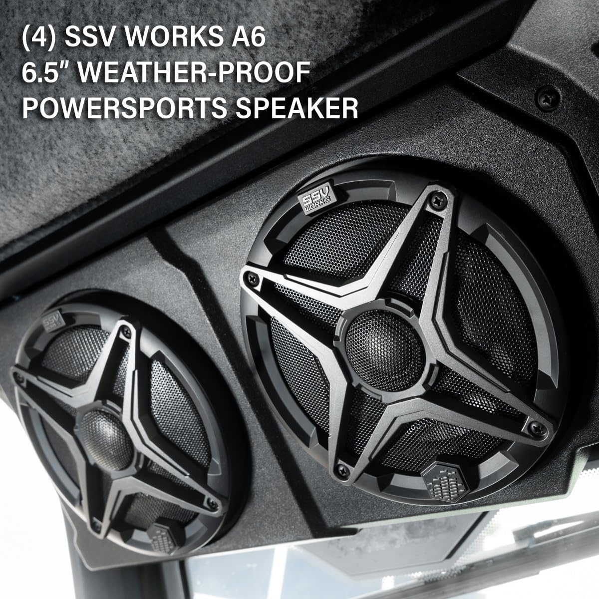 Transform your Can-Am Defender HD10 or HD11 with SSV Works’ complete 4-speaker overhead sound system. This plug-and-play audio solution delivers premium sound without the complexity of traditional installations. Complete System Includes: The system features four marine-grade speakers strategically positioned in a custom overhead enclosure, powered by a JVC MR305 Bluetooth head unit. Stream music wirelessly from your phone, connect via USB, or use the auxiliary input – whatever your preference, this system has you covered. Easy Installation:Installation couldn’t be easier. The overhead enclosure bolts directly to factory mounting points with no cutting or drilling required. Simply connect the vehicle-specific plug-and-play harness, and you’re ready to enjoy quality audio on every ride. The design fully retains your factory rearview mirror and windshield wiper functionality while tucking up and out of the way for a clean, integrated look. Built for Adventure: Built to SSV Works’ exacting standards, every component is engineered to withstand the demanding off-road environment. The fully weatherproof construction ensures reliable performance in sand, dust, water, and snow. Back your investment with confidence – the enclosure and speakers are covered by our limited lifetime warranty. Premium Features: The radio mount includes two convenient rocker switch openings, allowing you to add accessory controls exactly where you need them. Whether you’re running an open cab or enclosed cab configuration, this system fits perfectly. Compatibility: Fits 2018-2026 Can-Am Defender HD10 and 2025-2026 Can-Am Defender HD11 models. If you’re looking for an easy way to add quality audio to your Defender without sacrificing functionality or breaking the bank, this is your solution.