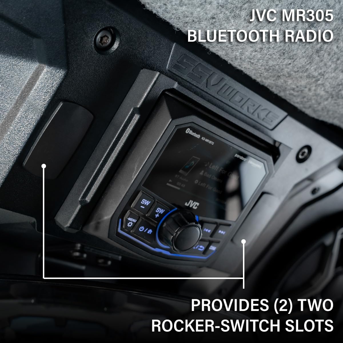JVC MR305 Bluetooth Connectivity: Stream music wirelessly via Bluetooth, USB, or auxiliary input. Features two rocker switch openings for adding accessory controls exactly where you need them.