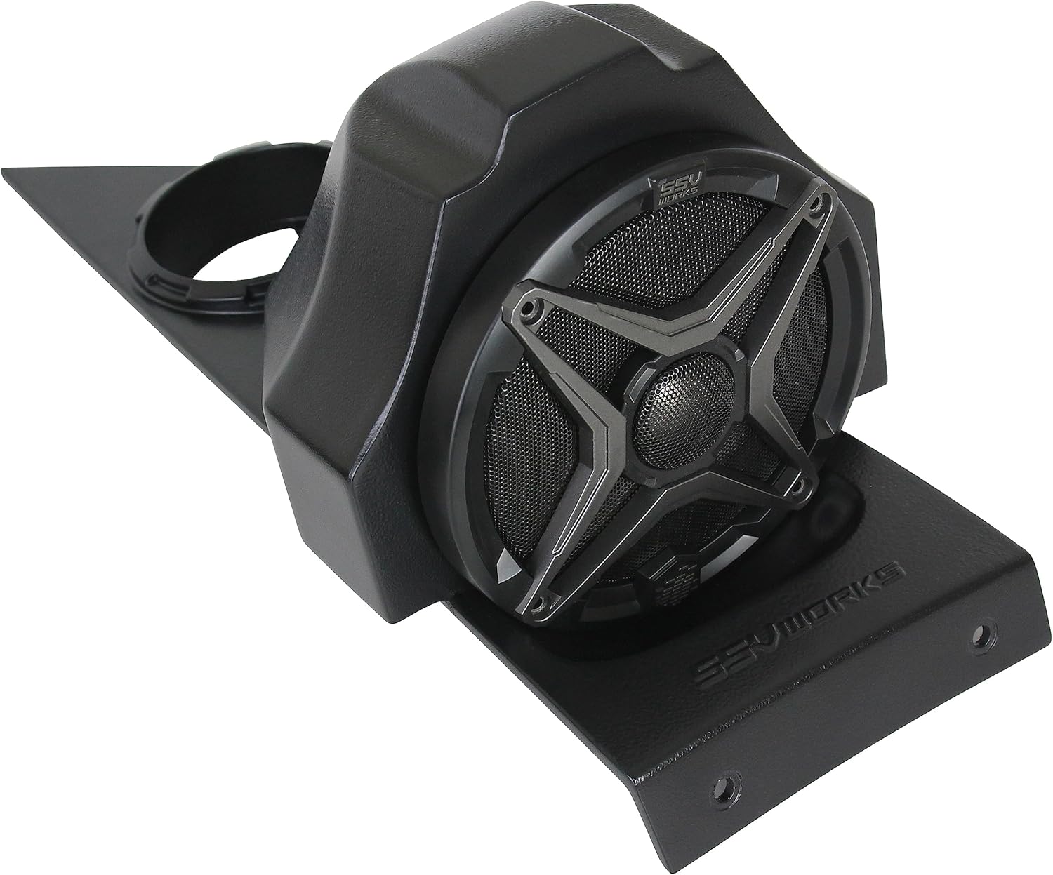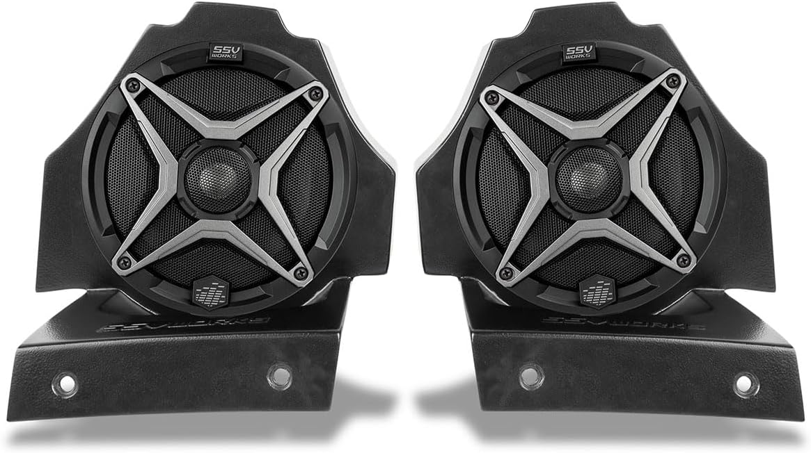 SSV Works custom molded behind seat speaker pods are designed for 6.5″ speakers and perfectly fit behind the seat under the rear hoops. They are 100% fiberglass for the best sound quality and bass response. Speakers: SSV Works Powersports speakers:(SS-B65A) Get louder, cleaner sound even in the dirt and mud. Engineered specifically for Powersports, the new WP-A6 WeatherProof speaker brings audiophile grade components to the outdoors. The 25mm tweeter creates crisp brilliant highs engineered to be heard outdoors, even in a helmet over the motor haulin’ down the trails. The grille mounted tweeter allows for peak cone travel creating maximum output while providing a low profile with optimal weatherproofing. Marine speakers are great for boats; however boat speakers don’t get as wet, dirty or muddy as you do in a Side X Side. WP-A6 speakers feature an EPDM duo lock gasket surrounding the speaker to keep the water out and the sound pressure in. EPDM conforms to the surface and seals tight no matter where you ride, in direct UV, extreme heat, or in freezing temps. Reliability meets control with the Santoprene surround; a 30% lighter thermoplastic elastomer surrounding the polypropylene cone for exceptional volume and clarity in the harshest conditions. The SSV Works WP-A6 speaker features a unique positive lock connector to prevent speaker wire detachment inside the enclosure. No matter how hard you drive, your speakers will keep on rockin’ with 4ohms and 60w RMS/120w peak power. *Multiple Patents Pending* Kicker KM Marine Speakers:(SS-B65K) Spectacular highs and midrange sounds provide full-range audio specifically for a marine environment – 6.5″ 195 watt (65w RMS) 2-way coaxial speakers. Without speakers:(SS-B65U) order ’em empty. Already have speakers? This is for you.